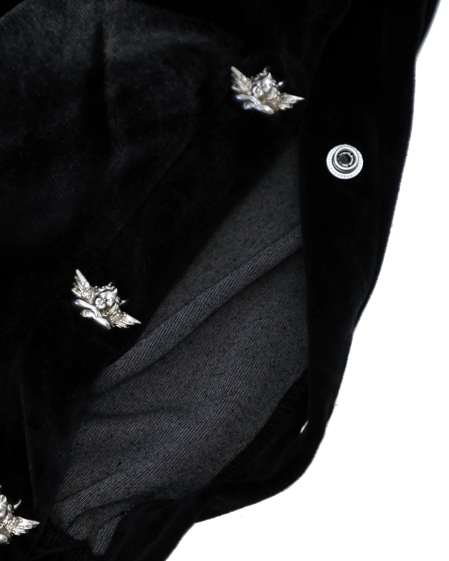 Lightweight velour fabric. High rise sweatpants with metal alloy angel snap buttons down the leg. Elastic cuffs and waistband with side pockets. Adjustable and removable belt tie. Each item is hand dyed – may show slight color variations. Made in Los Angeles, California.Â