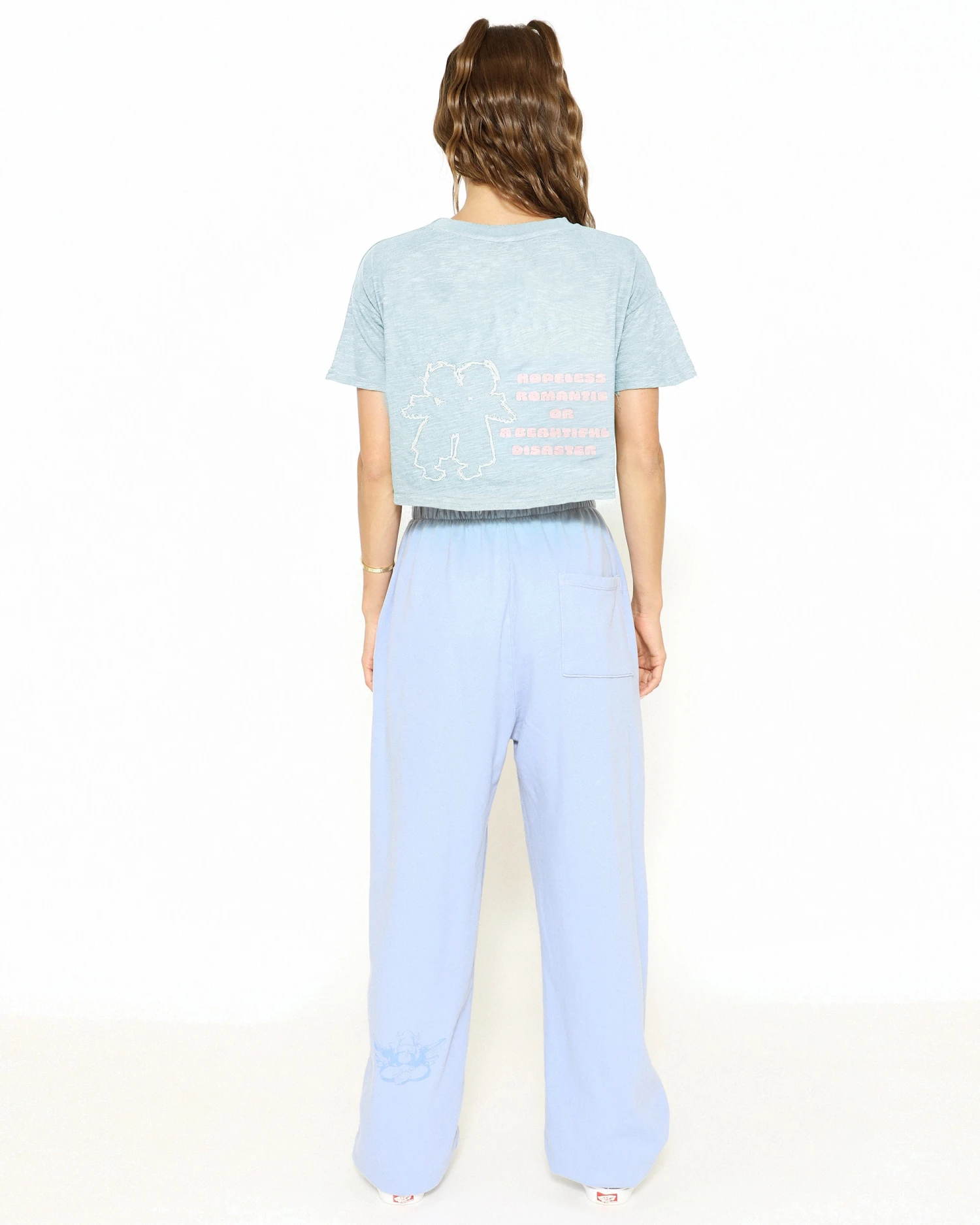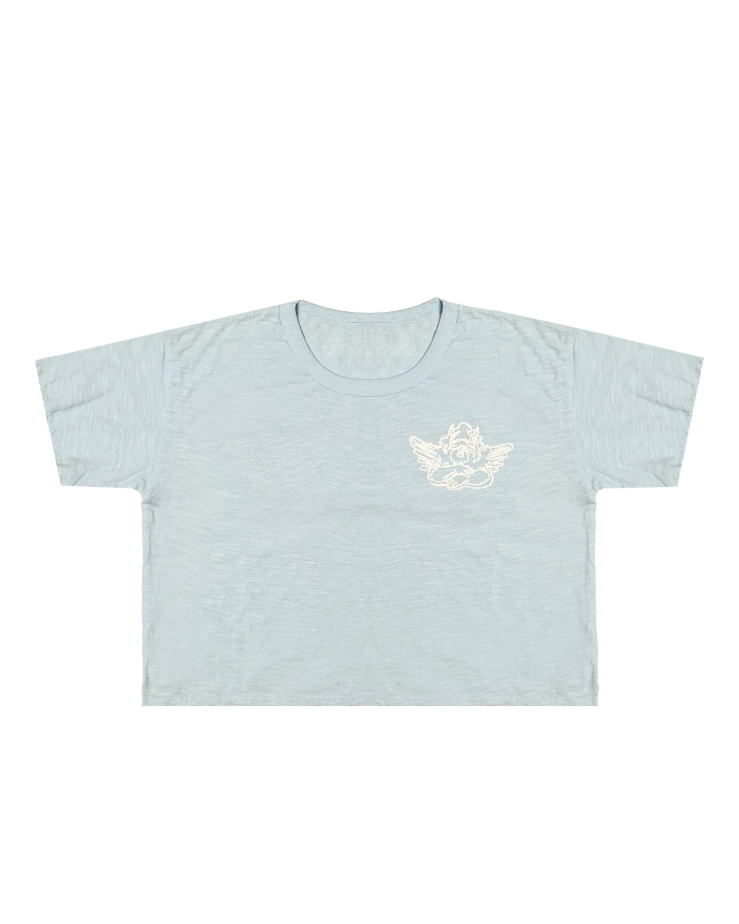 Cotton slub cropped baby tee in baby blue. Lightweight and slightly sheer.Â