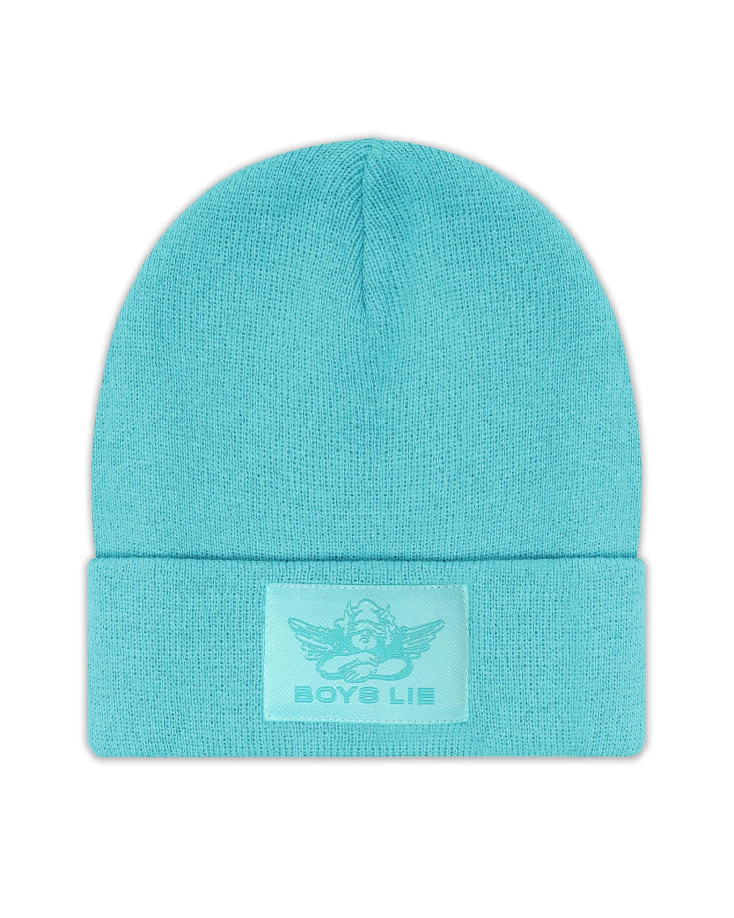 Aquamarine beanie with monochromatic Boys Lie logo patch.
