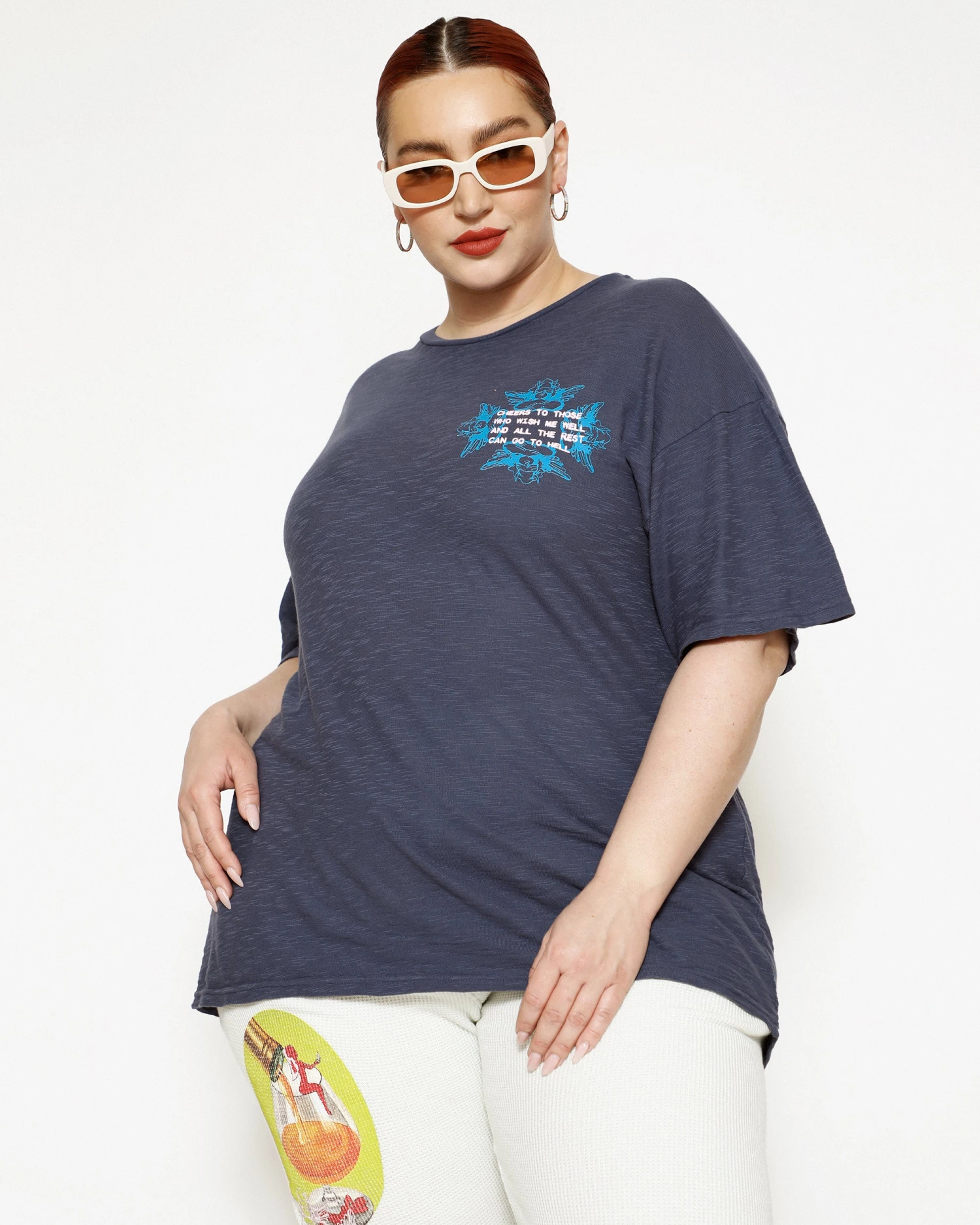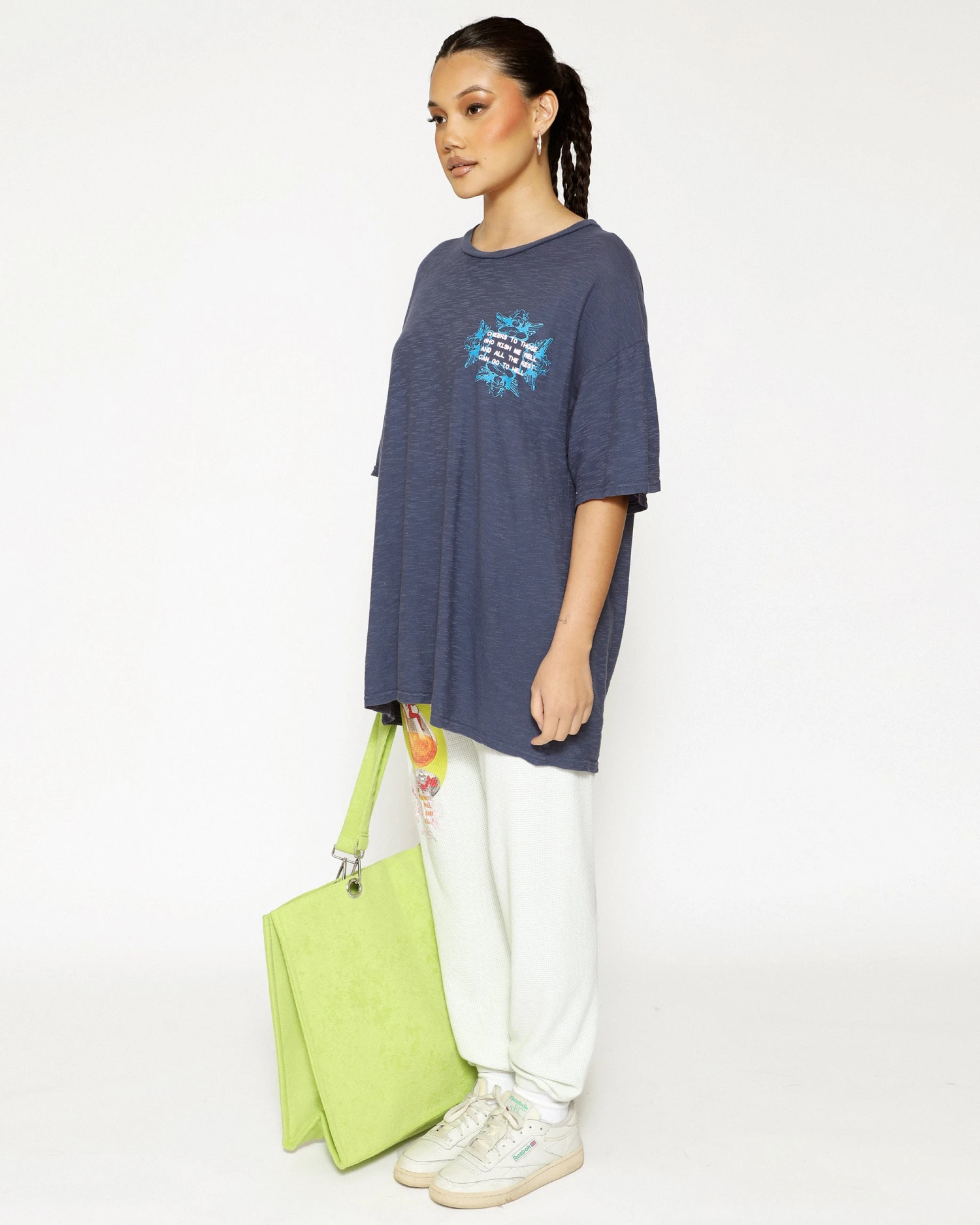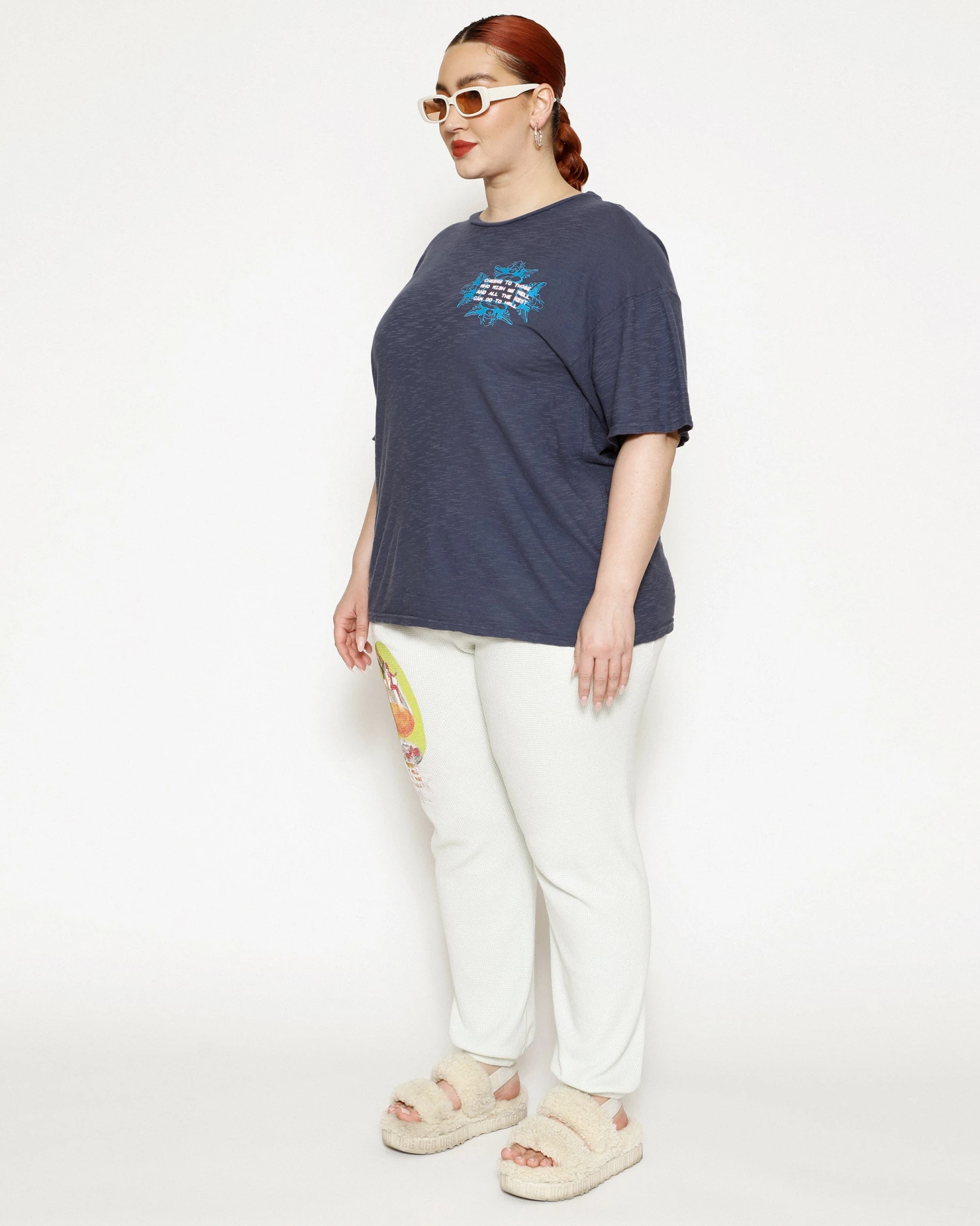 Lightweight and slightly sheer navy tee in cotton slub jersey with an oversized fit.Â