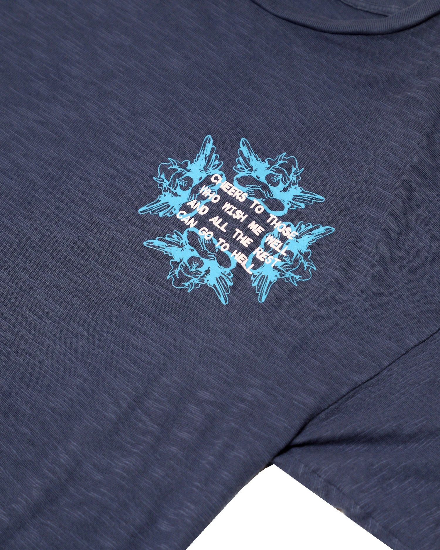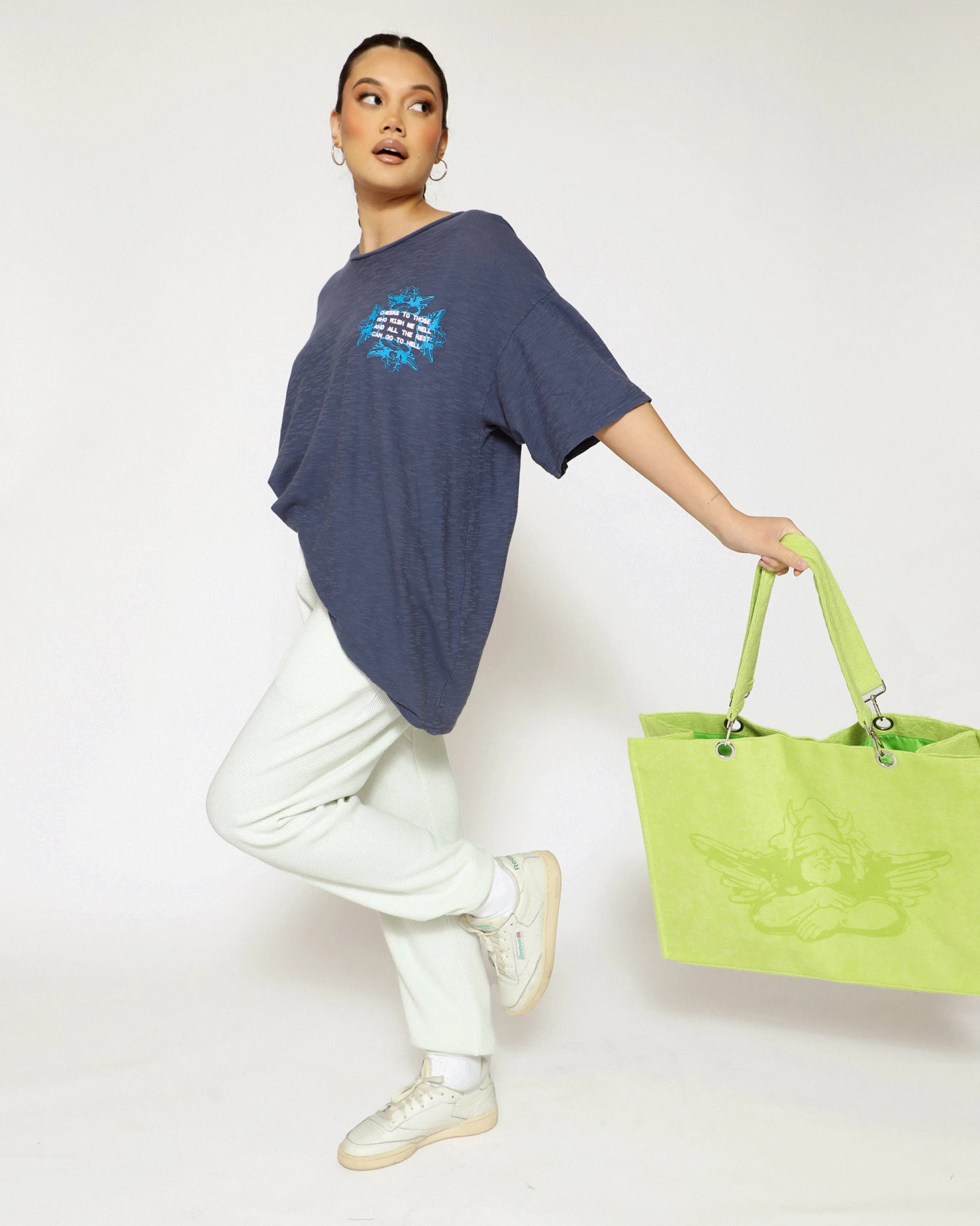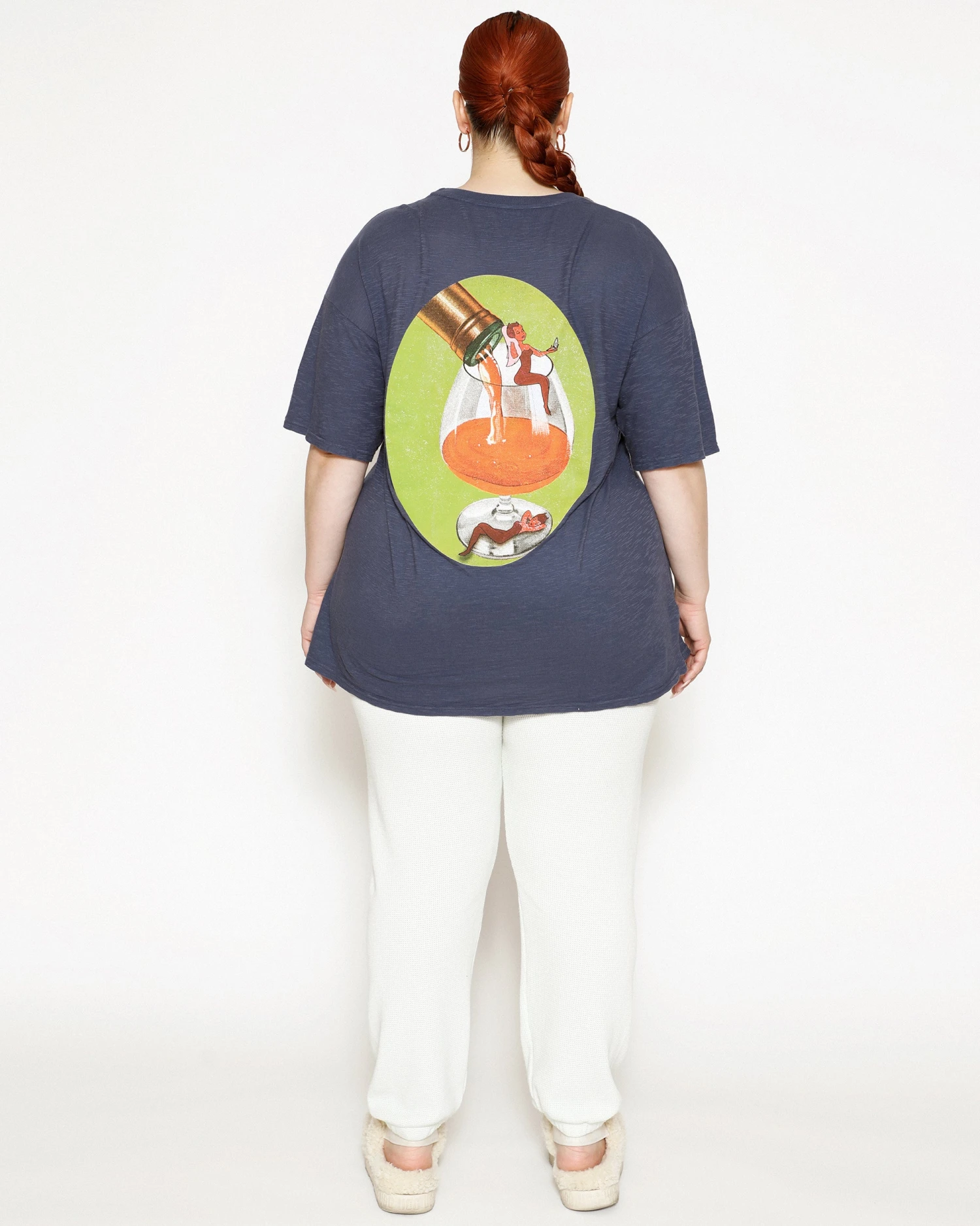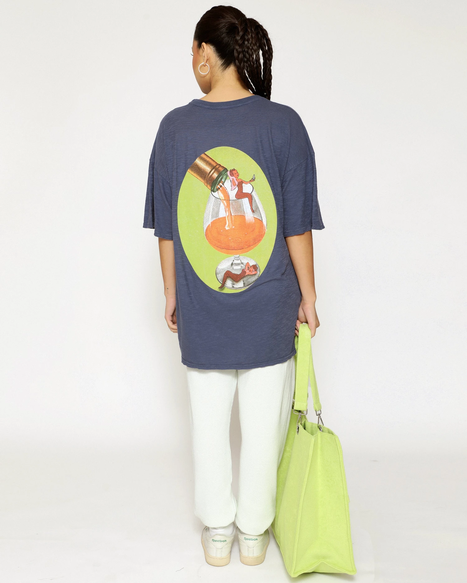 Lightweight and slightly sheer navy tee in cotton slub jersey with an oversized fit.Â