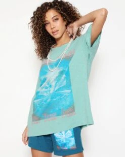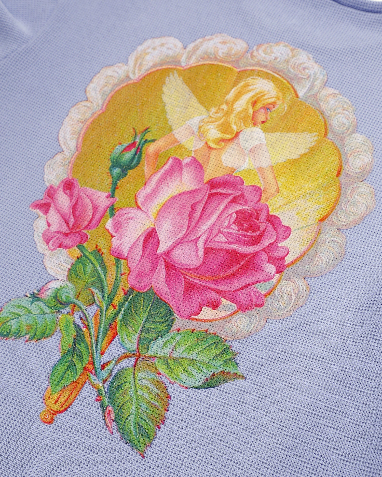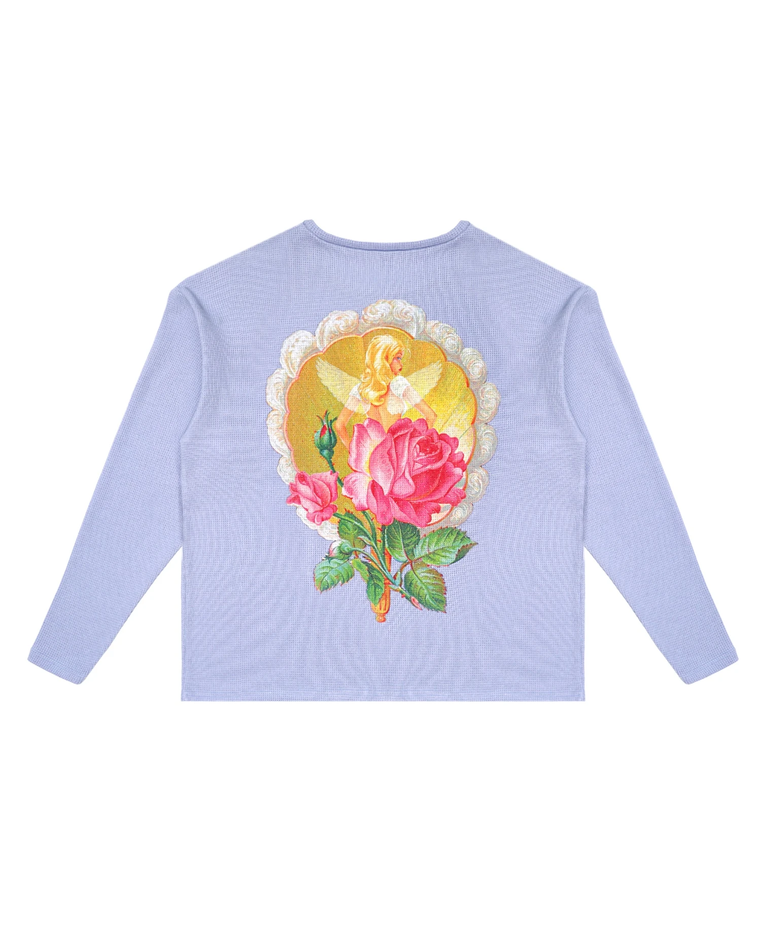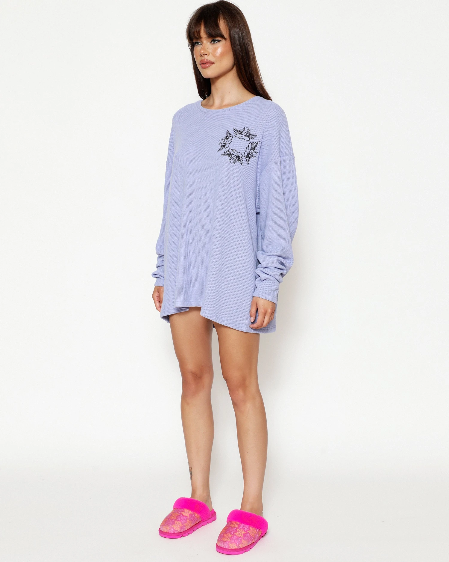Oversized thermal long sleeve tee in purple with rhinestone embellishments.