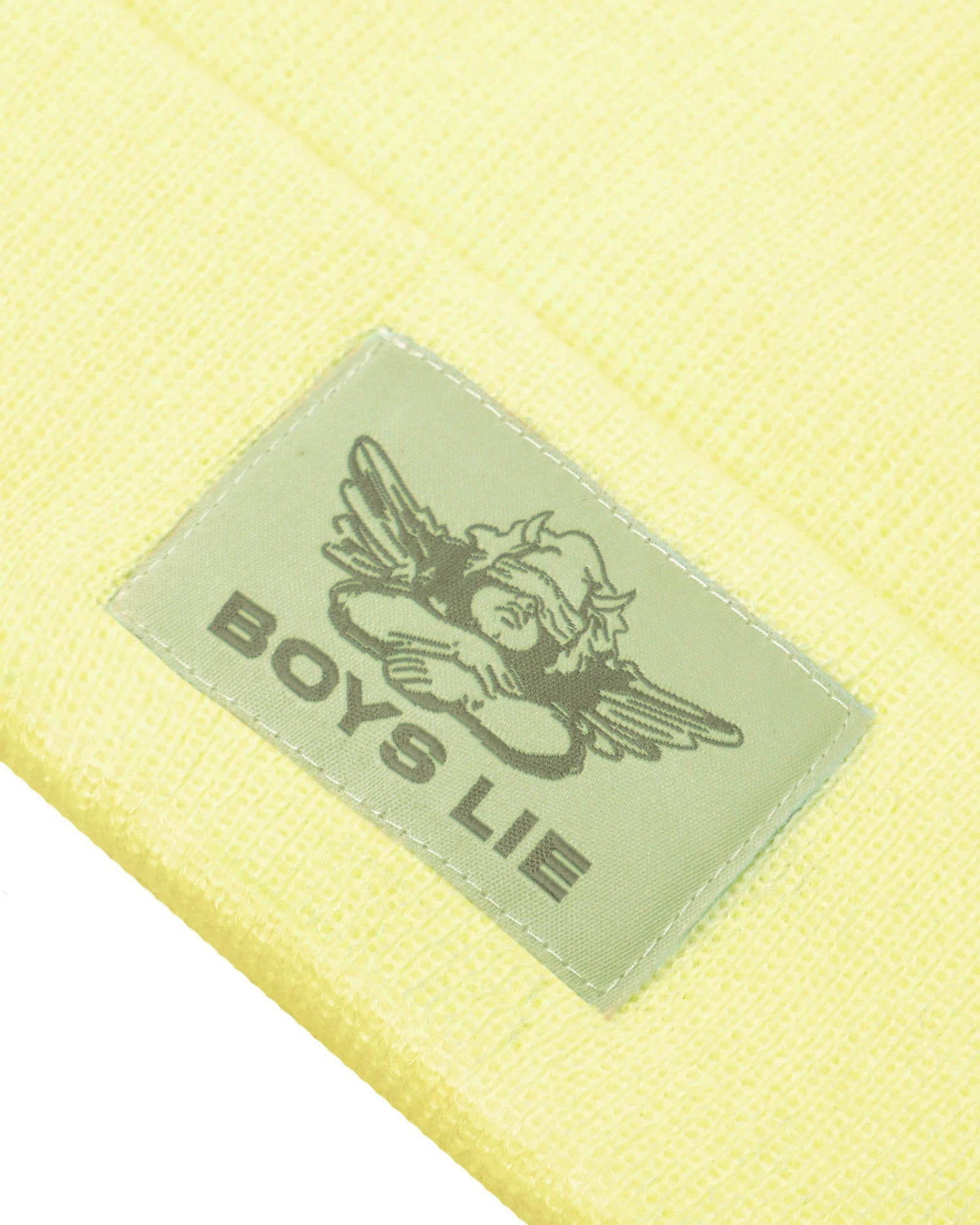Soft yellow with monochromatic yellow Boys Lie logo patch.
