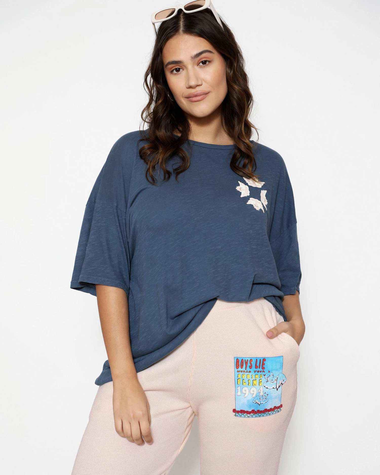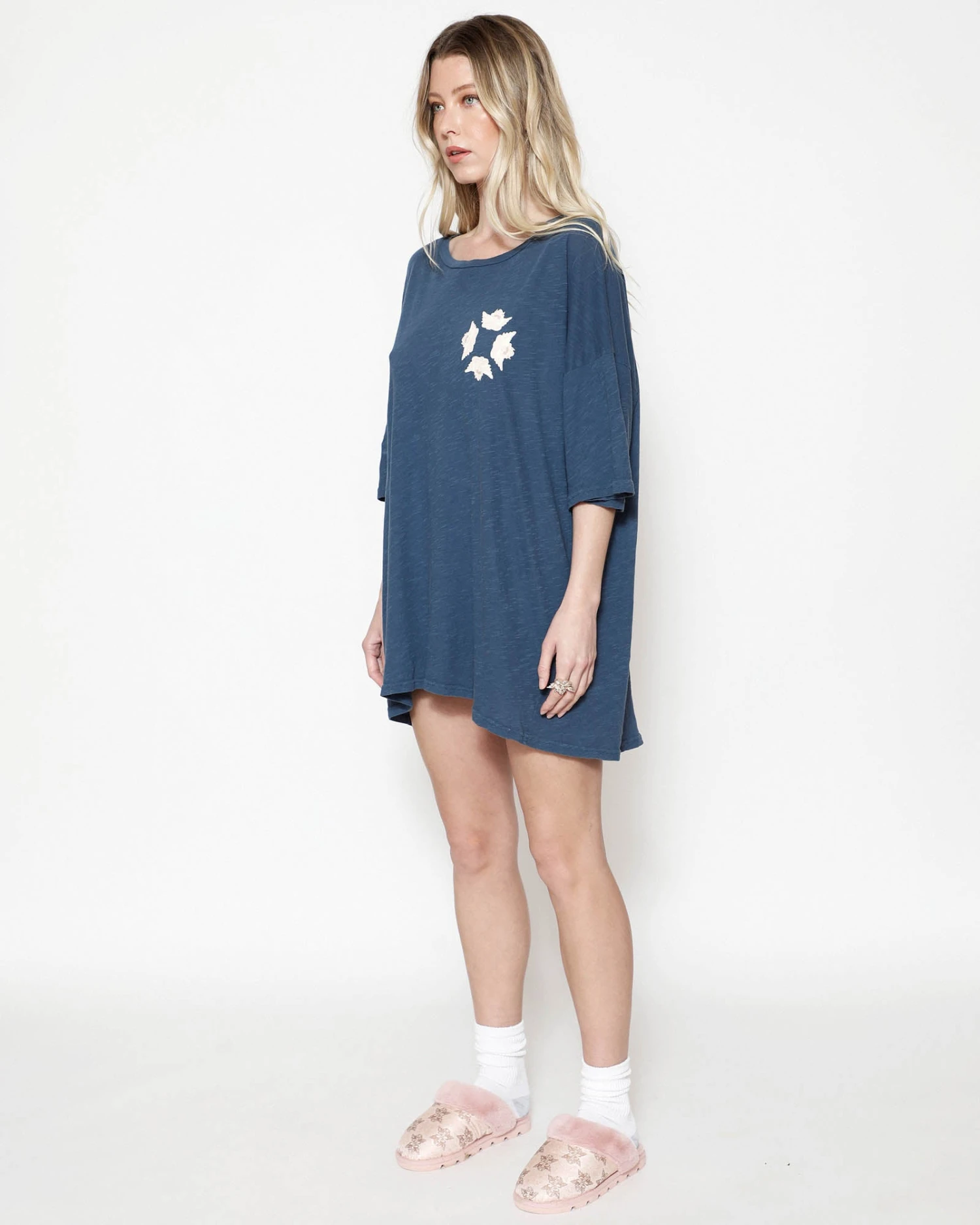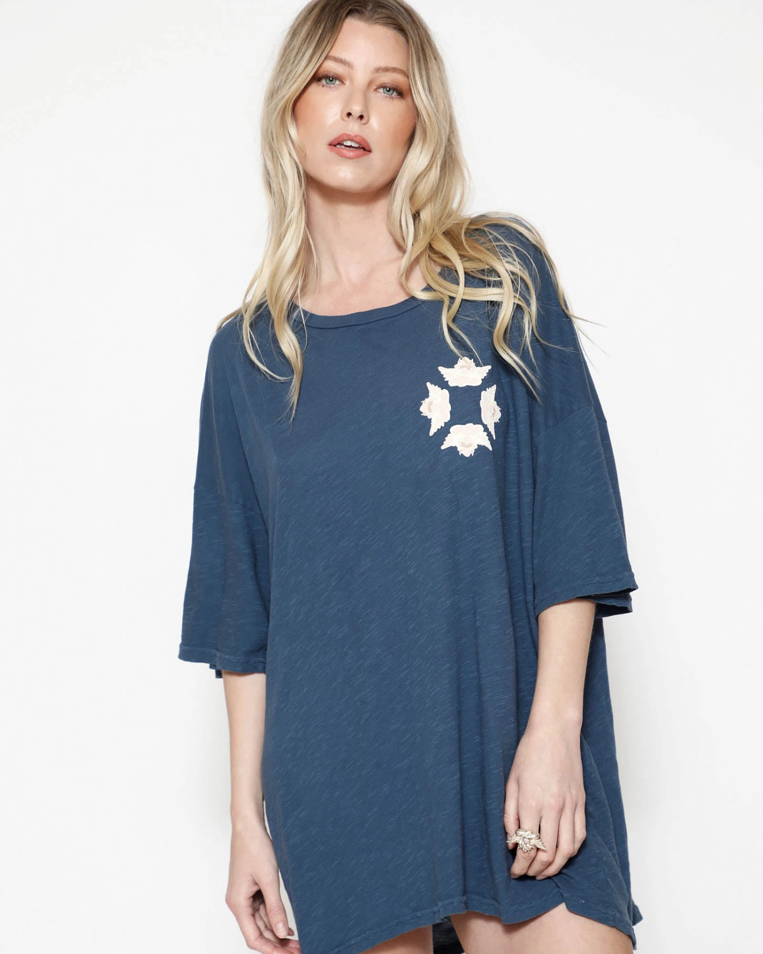 Lightweight and slightly sheer navy tee in cotton slub jersey with an oversized fit.